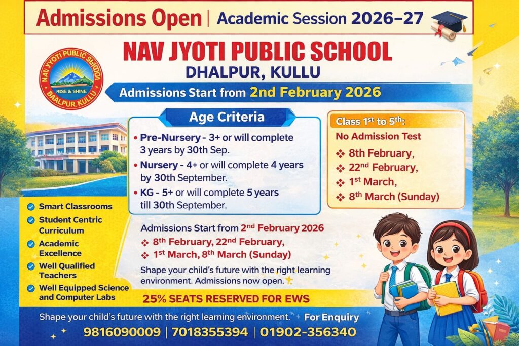 Nav Jyoti Public School warmly invites parents to enroll their children for the Academic Session 2026–27. The school is dedicated to nurturing young minds through a balanced blend of academic rigor, values-based learning, and holistic development. With modern infrastructure, experienced educators, and a student-focused approach, the institution provides a safe and inspiring environment where children grow with confidence, curiosity, and competence.